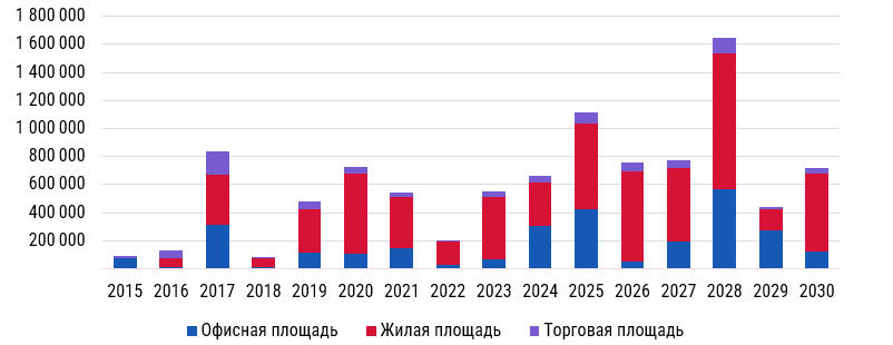 Согласно аналитическим данным Commonwealth Partnership (CMWP) площадь существующих жилых объектов, введенных с 2015 года в составе Большого Сити, составляет 4,7 млн кв. м., а площадь заявленной к вводу жилой недвижимости до 2030 г. в этом же районе составляет более 5 млн кв. м. По программам реновации комплексного развития территорий в Большом Сити будет реализовано 52% будущего жилья до 2030 года